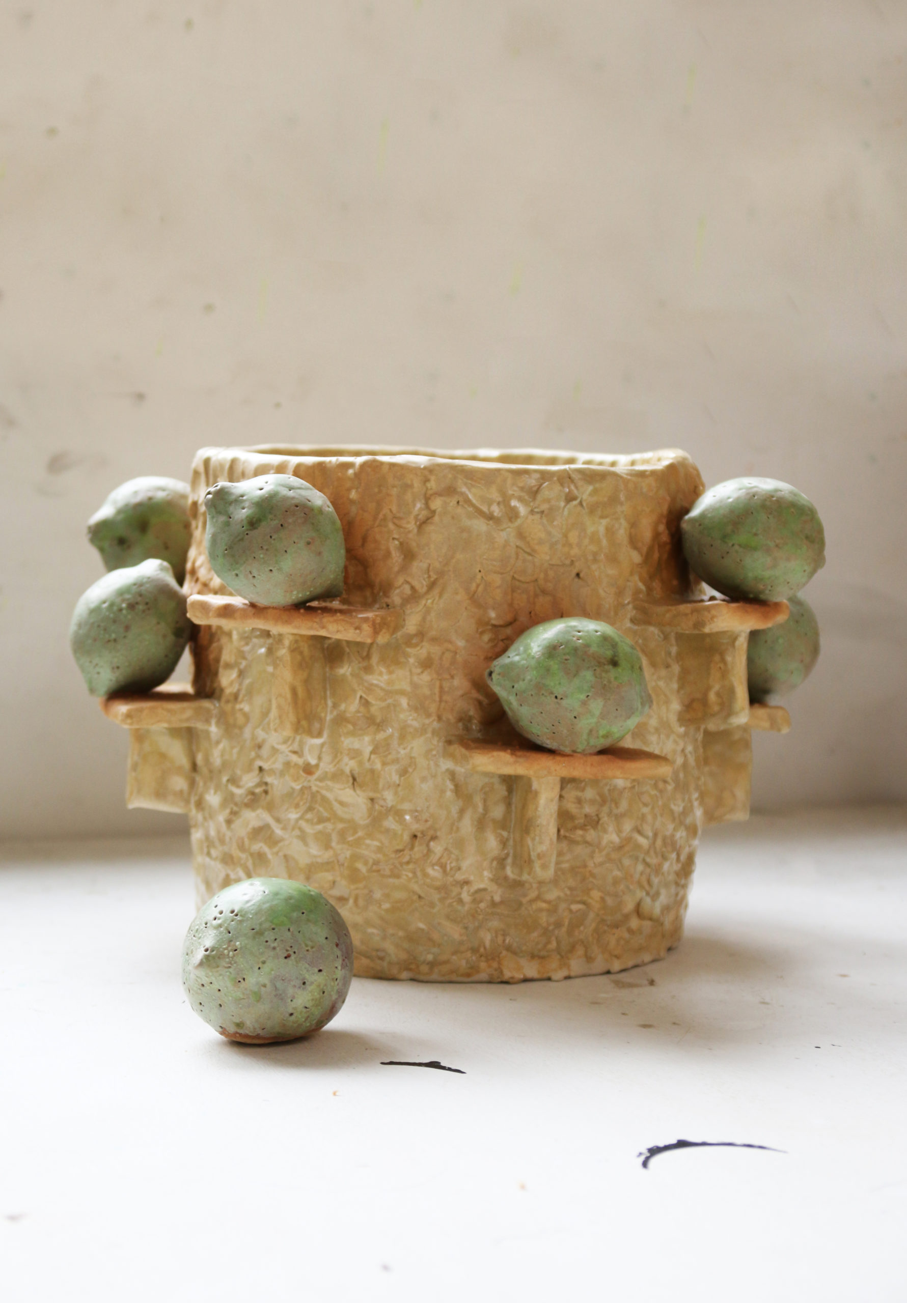 Each piece presented at the fair is a unique work, created especially for the occasion by contemporary artists. Particular attention has been paid, in addition to the form always very embodied, to the functioning of each pot: which plant will grow in it and how the container will allow it to evolve? What kind of watering can be done in it, how is the water conserved, or not, and how does it drain? Is it intended to be used indoors, outside, or both? Each artist has appropriated its constraints and offers a singular vision of this everyday object, making extraordinary a somewhat banal object.