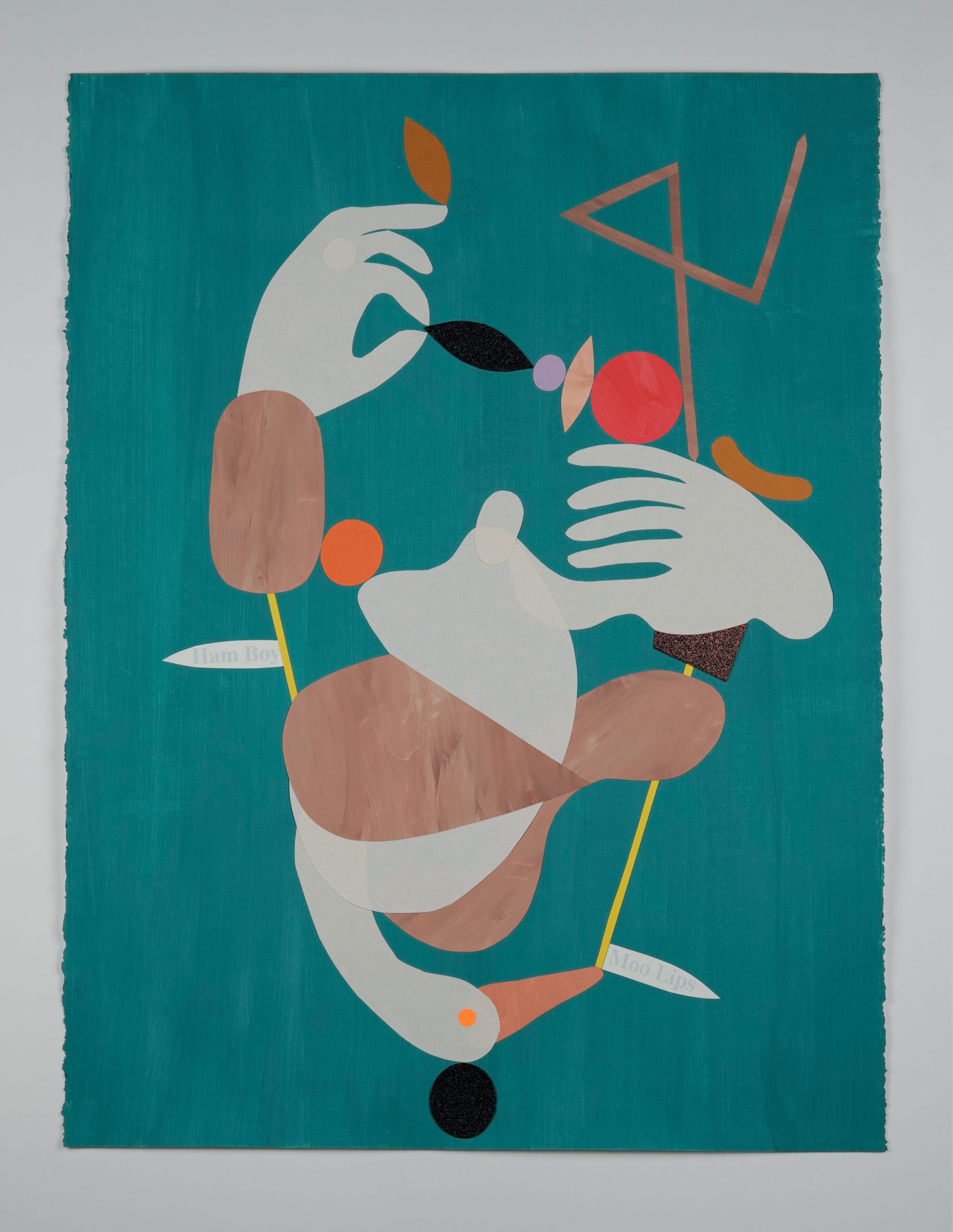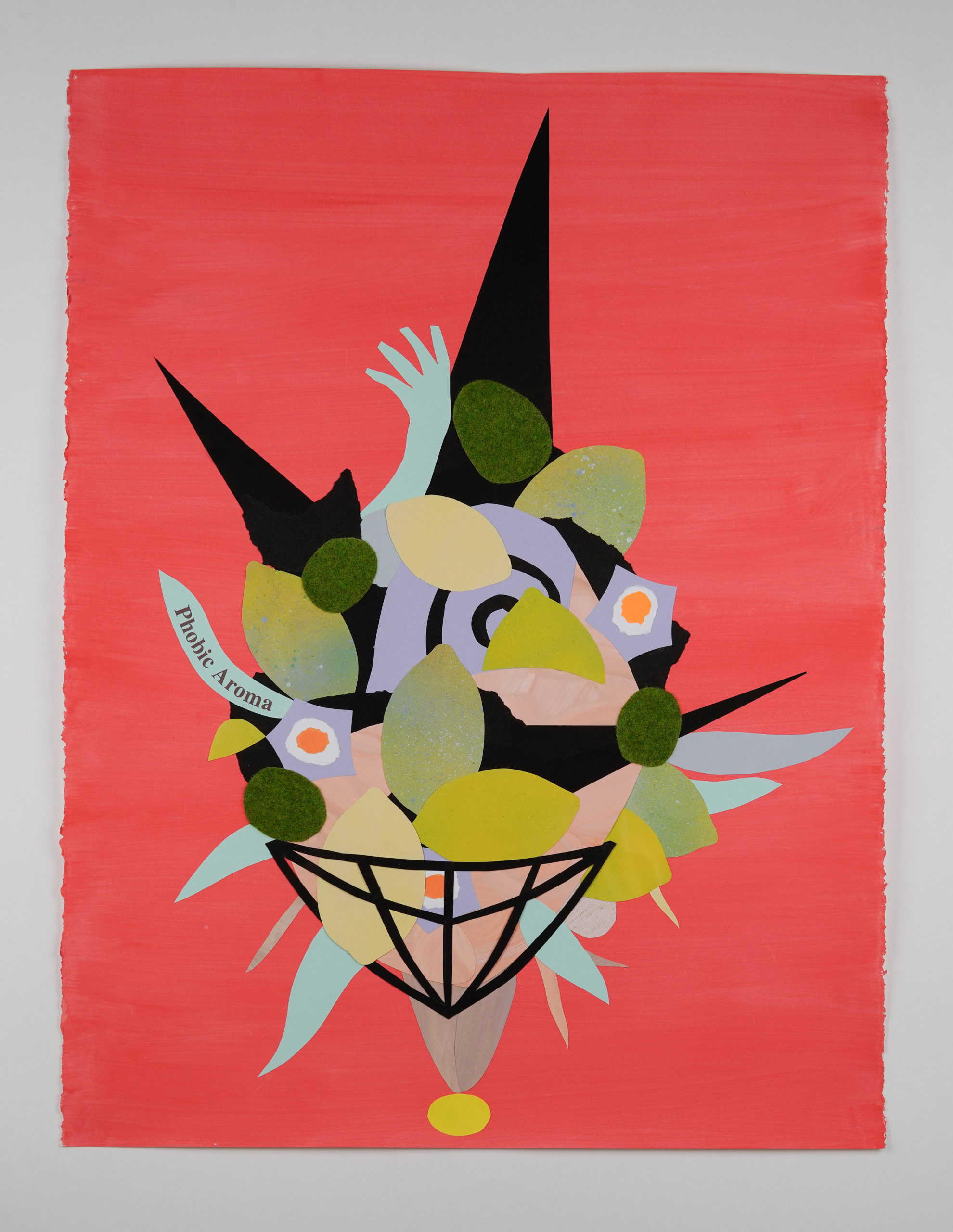 Collage, gouache and acrylic on paper, glitter foam, fabric, 76 x 58 cm (87 x 68.5 x 3 cm framed)
