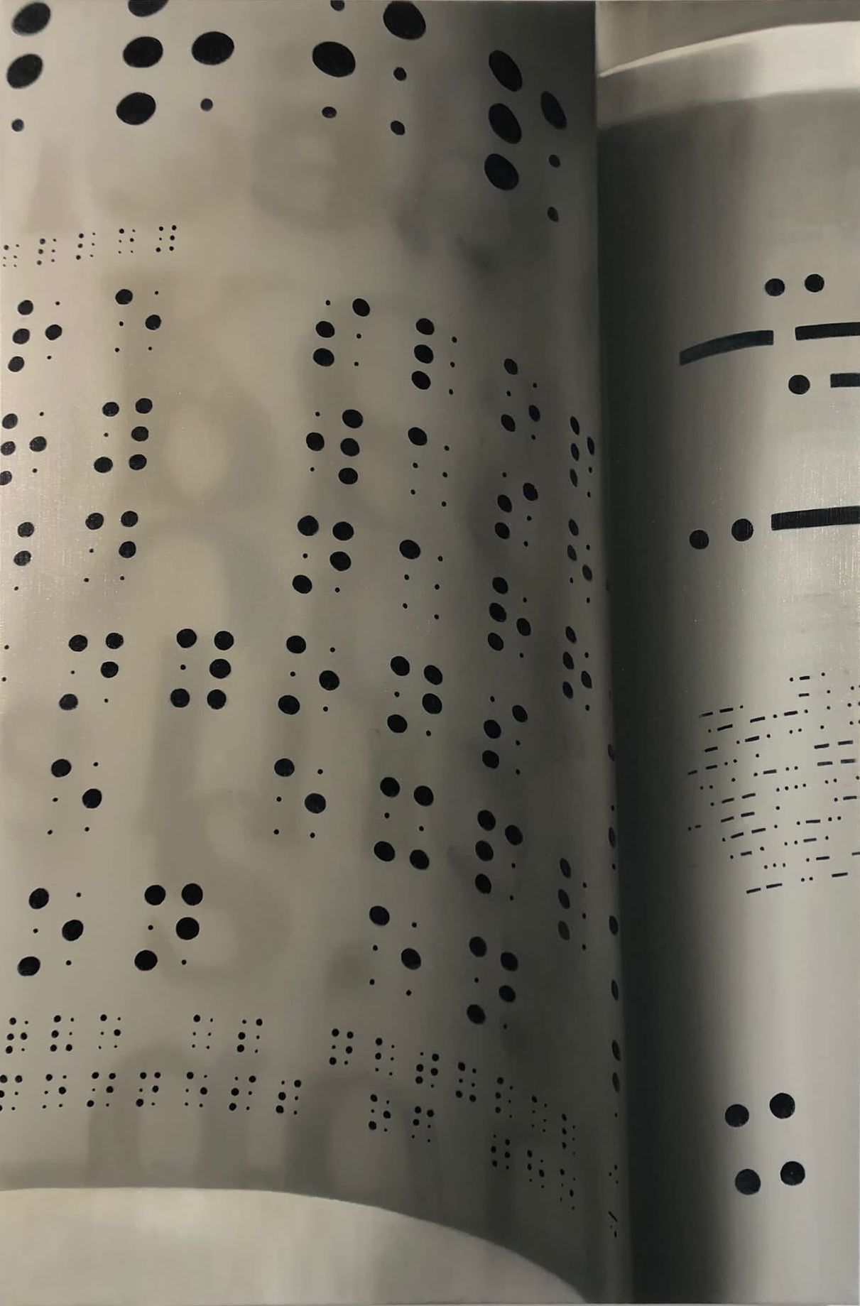 On the wall are exhibited a gouache by Fernand Léger, evoking a mechanical aesthetic and referring to the industrial transformation of the beginning of the 20th century; two paintings on wood by Guillaume Valenti, questioning, through the prism of Braille writing, the life of the image in our real world after its absorption by the digital; and a watercolour by Achraf Touloub, who is interested in the process of definition of the body (physical, virtual and imaginary) tested by industrial or technological development.