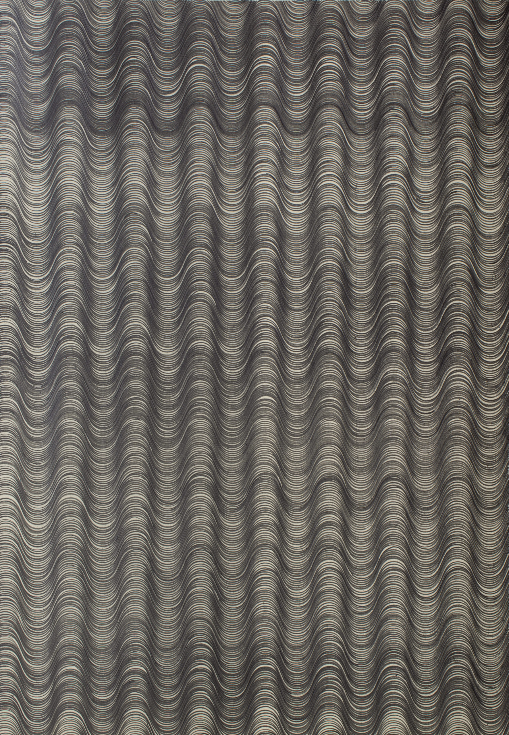 In a not so opposite manner Norbert Filep uses the formal language of op-art to reflect on interoperability between form, colour and language, through the subtle aesthetics of pure abstraction. He recreates the colour spectre visible to the human eye by using each scaled-up frequency length and constructing different conceptual-monochrome drawings.