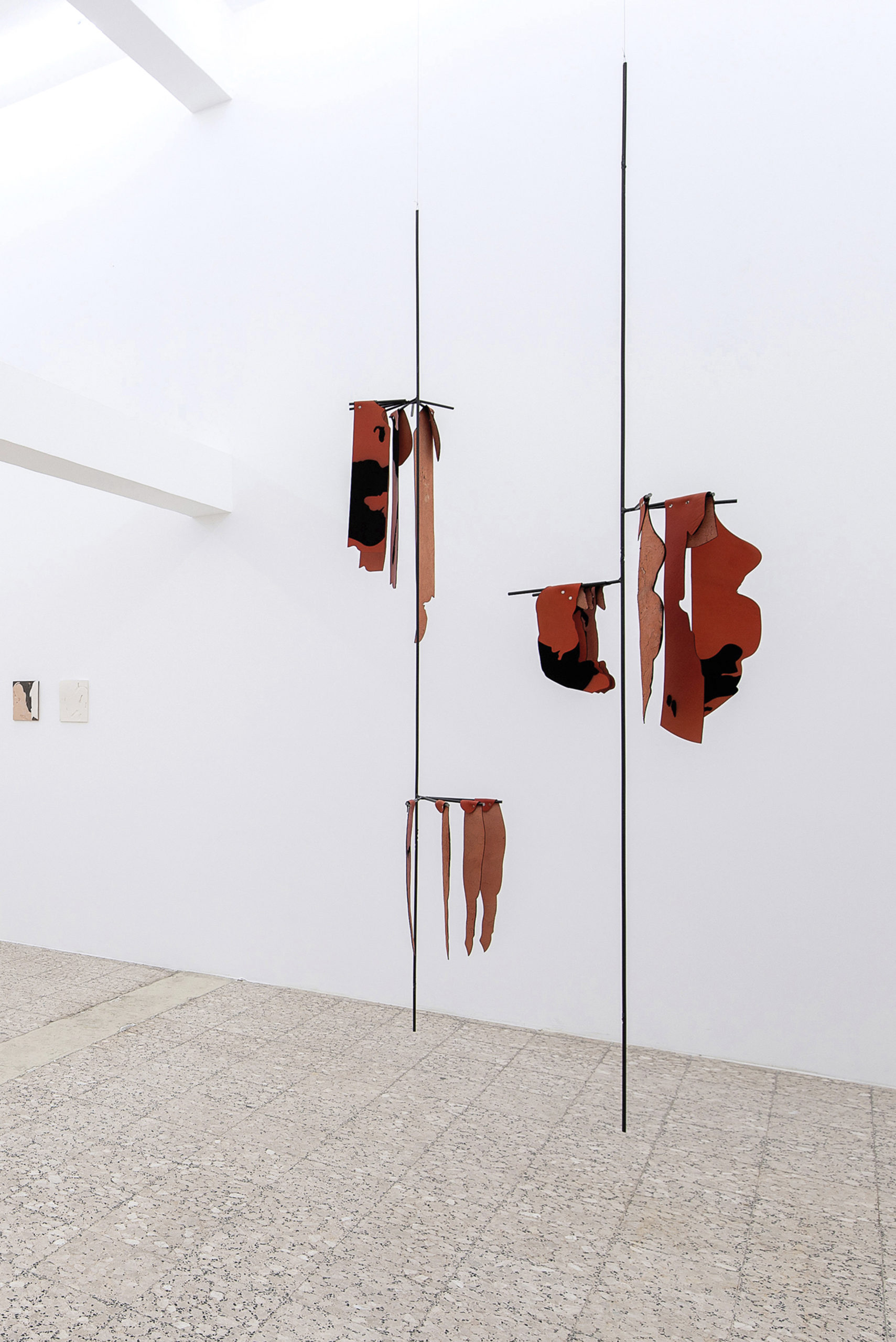 Intitulée Hallucinations and tempi, une série de pièces en verre fondue et en acier partagent ces mantras, défigurant leur langage à travers des restes de corps et des fragments du paysage chypriote ; roches, minerais et fossiles.