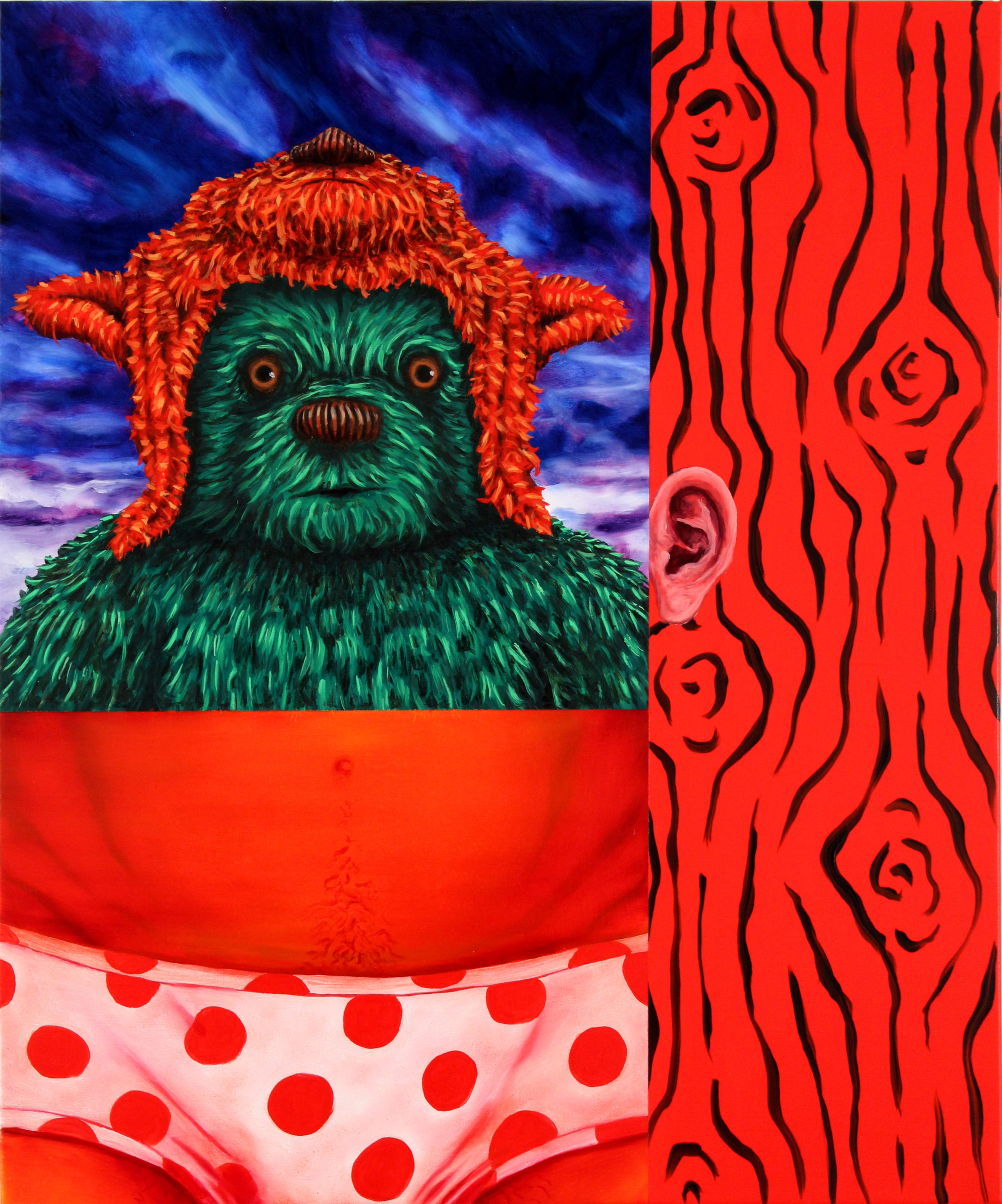 Jean-Simon Raclot, nous invite à découvrir une série de tableaux et dessins aux teintes majoritairement acidulées, «chlorophyliptique » fourmillants de touches intenses comme irradiantes donnant un accent fantastique à l’ensemble des propositions. Images mémorielles, ayant rapport avec le parcours du peintre qui a expérimenté le retrait et la solitude afin de nous ramener ces toiles empreintes d’une douce mélancolie fluorée. À l’heure où le dérèglement climatique est au cœur de l’actualité, ce dérèglement chromatique offre comme un filtre puissamment onirique évoquant tour à tour d’autres temps, d’autres lieux. Pensons aux paysages d’Alien de Ridley Scott, «Cobra verde », l’Enfer Vert, cette jungle au cœur des ténèbres. L’humain rôde masqué ou désaxé au sein de ce théâtre vide. Vers les verts au plus près d’un vertige.